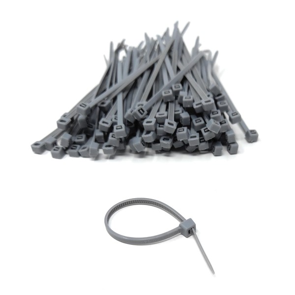 Nylon Cable Ties, 100mm x 2.5mm, Pack of 100, Plastic Zip Tie Wraps, Self-Locking (Grey)