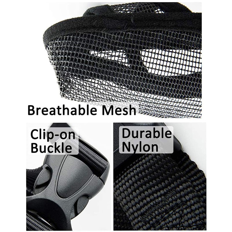 - Comfy Mesh Muzzle for Dogs: Due to the lightweight and breathable material, your dog will get used to the soft muzzle as quickly as possible and in most cases simply does not notice it. Adjustable neck strap keeps the muzzle tight enough to control his bite, but loose enough to allow freedom to pant and yawn. In addition, you can also easily put it in a pocket.