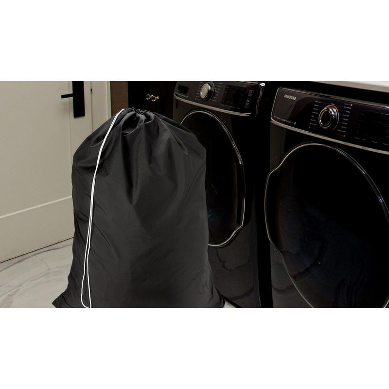 Nylon Laundry Bag - Locking Drawstring Closure and Machine Washable. These Large Bags will Fit a Laundry Basket or Hamper and Strong Enough to Carry up to Three Loads of Clothes. (Black)