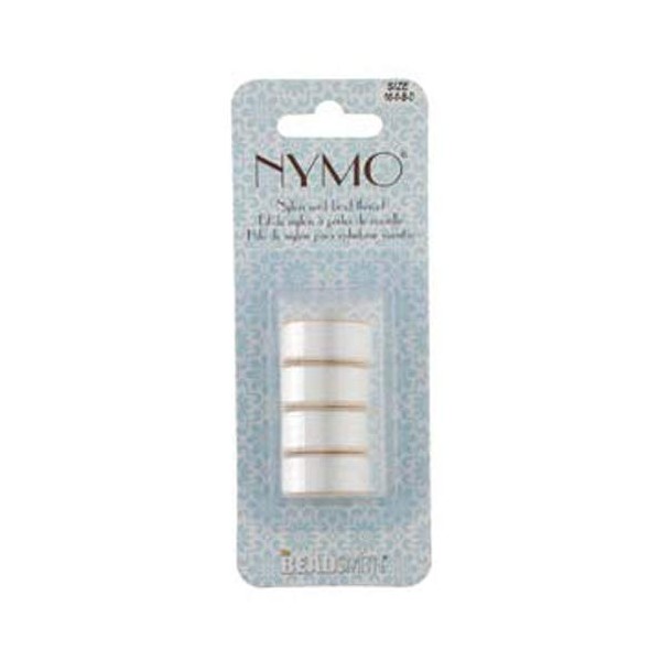 Nymo is a top quality nylon thread. It is ideal for seed bead work and other select needlework and sewing creations. 1 bobbin each in sizes 00 (110 yards), 0 (100 yards), B (72 yards), and D (64 yards).