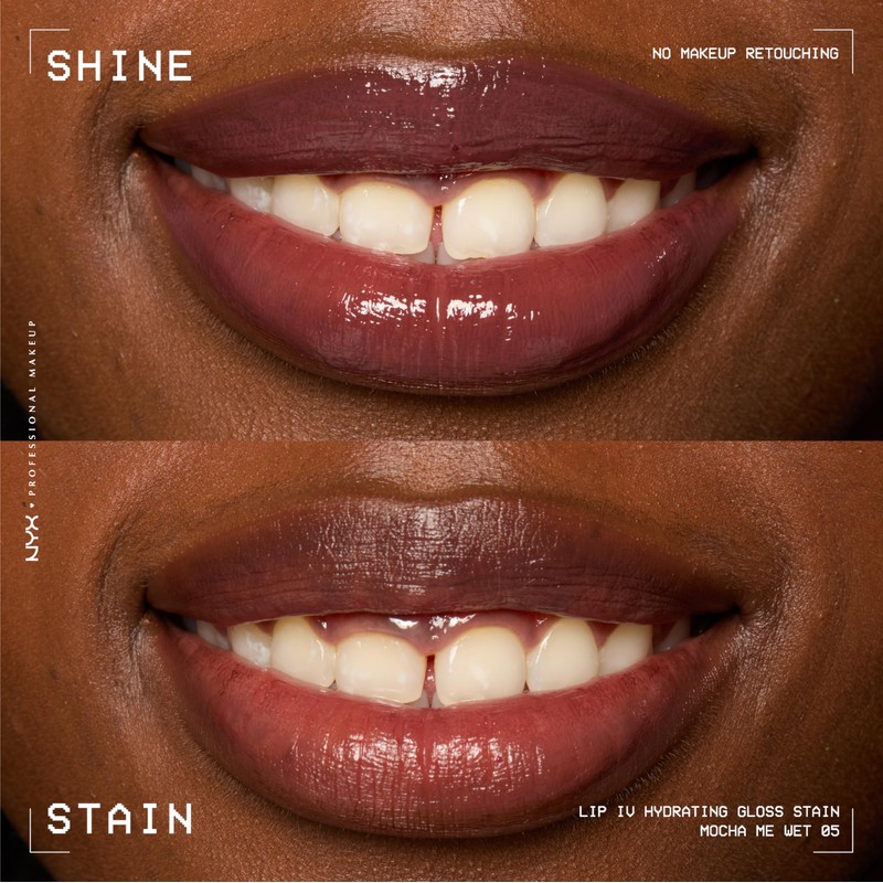 NYX PROFESSIONAL MAKEUP Lip IV Hydrating Glossy Lip Stain with 12HR Hydration - Mocha Me Wet (Brown)