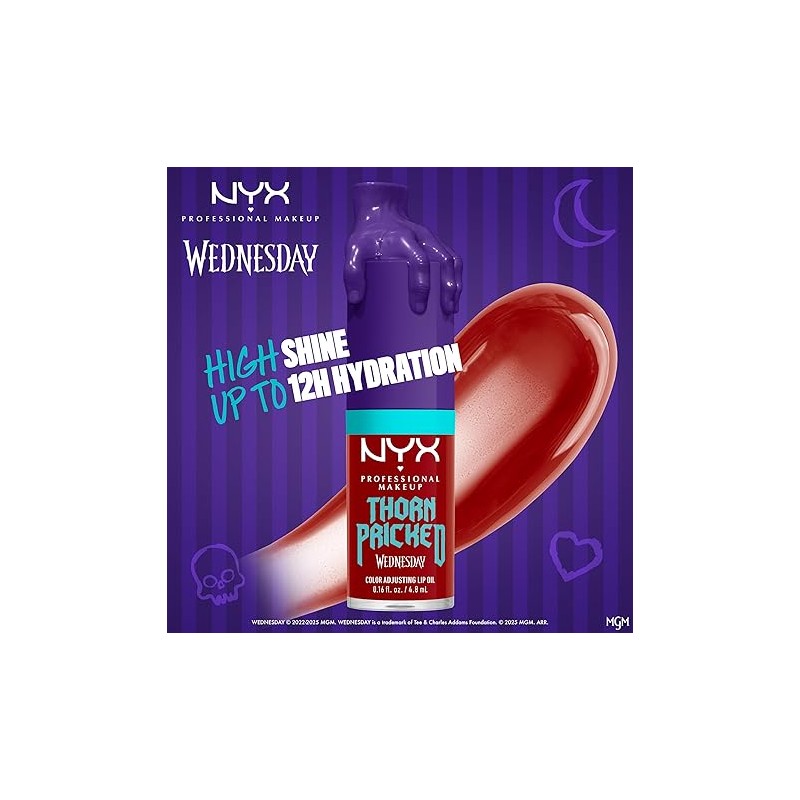 NYX Professional Makeup Wednesday Color-Shifting Lip Oil, Moisturizing, Tinted, and Non-Sticky Lip Gloss with up to 12HR Hydration - Thorn Pricked