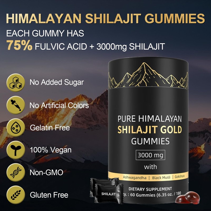 - SOURCED FROM HIMALAYASOur Pure Himalayan Shilajit Gold Gummies are specially made from pure organic gold-grade Shilajit. Our Shilajit is picked from the pristine highlands of the Himalayas at an altitude of 18,000 feet, pure and free of impurities. Our Shilajit Gummy is specially designed for those who pursue a healthy lifestyle, specifically for boosting energy, enhancing exercise effectiveness and aiding recovery, helping you achieve a healthy transformation. Shilajit gummy have now become a reliable and powerful supplement in our daily lives