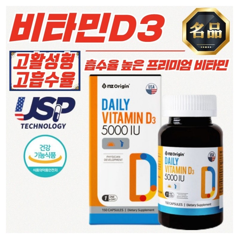 NZ Origin Daily Vitamin D3 5000IU (150 Capsules) 3 Units