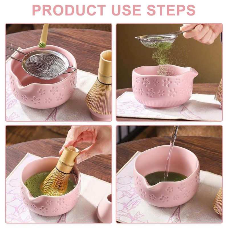 - 【Versatile Usage & Elegant Presentation 】 Cute and elegant cherry pink with pattern print matcha set whisk and bowl, ideal for home, office, gifts, and parties. The matcha making set offers a beautiful, cultural experience that elevates your tea experience.