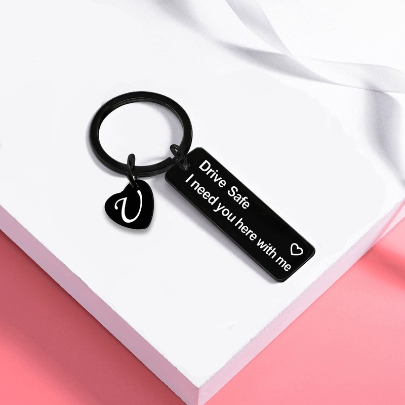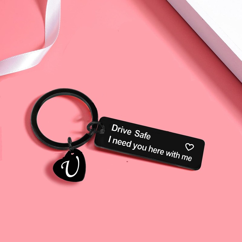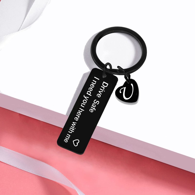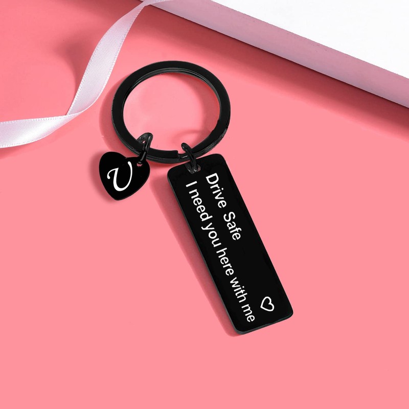 - The keychian design with 26 letters,it will be an unique gift to express your love.Sentimental gift for your boyfriend or husband, the inspirational message will remind your lover to keep safe while he is driving