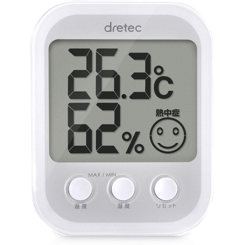 - Heatstroke Warning Display: The popular digital thermometer/hygrometer opsis has a warning display. A convenient feature that lets you know whether it is prone to heat stroke or flu. Because of the relationship between temperature and humidity, the facial expression changes (4 heatstroke and 2 flu) to indicate a laughing and comfortable environment