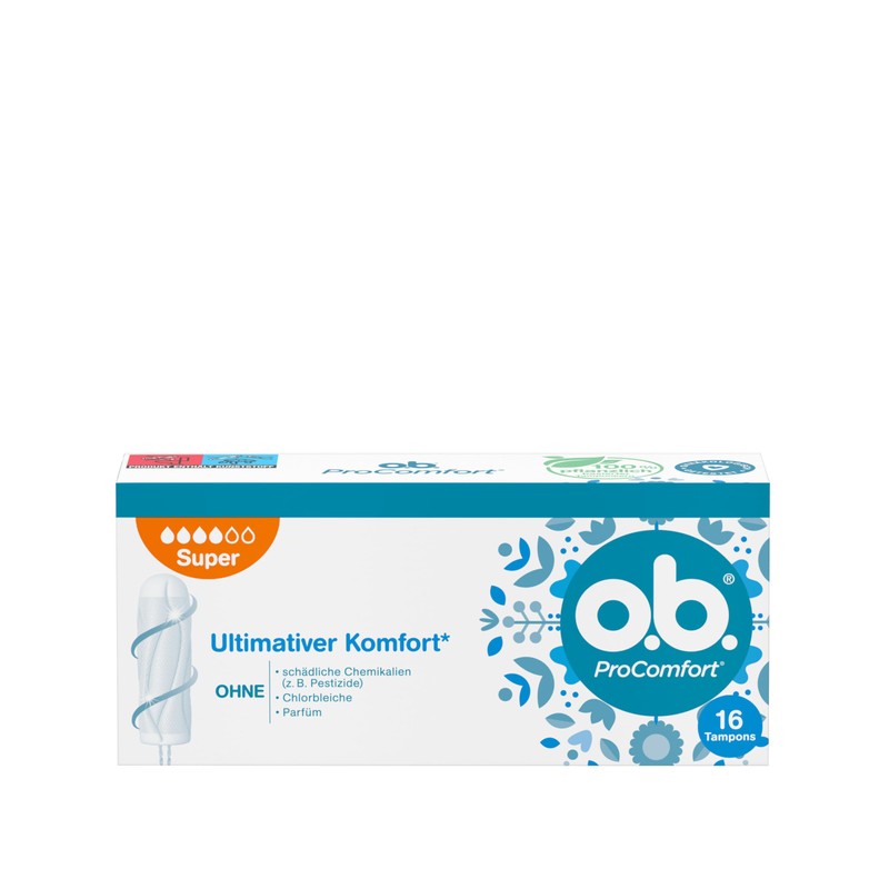 - Box contents: 6 x 16 pieces o.b. ProComfort Super Tampons to get through the days reliably