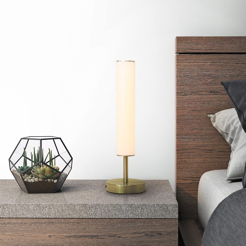 - Minimalistic Design - The sleek design of the Cylinder Desk Lamp works well in small spaces, corner desks or as a statement piece. The Cylinder Table lamp can add a luxurious feel to any space. The brushed nickel and antique brass finishes are certain to add the quality look you are searching for. This conservative design is also available in black
