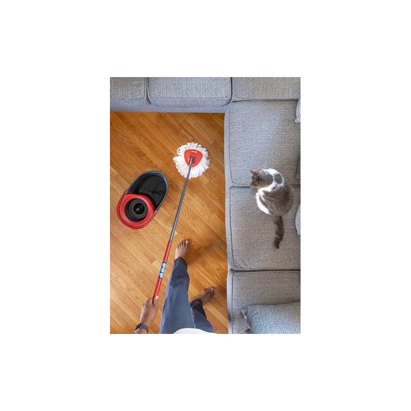 Enjoy a fast and fun floor cleaning experience. The EasyWring Spin Mop, which features hands -free wringing thanks to our foot pedal spin mop design. The foot pedal on the bucket allows for hands-free wringing, so you have less mess when mopping. Control the level of moisture of your mop with the built-in high-quality foot pedal designed to activate spin wringing. This SpinMop & Bucket gives you the ability to control the amount of water and moisture applied to floors making for easier wringing and quicker-drying floors. O-Cedar's EasyWring microfiber mop delivers a better clean by effectively removing dirt, grime and over 99% of bacteria with just water. The EasyWring is a better way to truly clean your floors! *#1 based on source: IRI, Total US MULO, L52 Weeks Ending 02/26/23;**Removes over 99% of E. coli and Staph. aureus from pre-finished hardwood flooring and ceramic tile using tap water, as tested at a 3rd party lab.