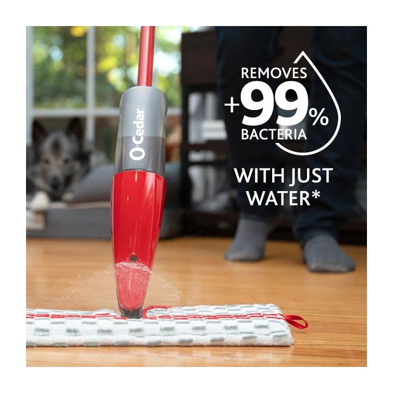 - REMOVES OVER 99% OF BACTERIA W/ JUST WATER: O-Cedar's ProMist MAX Microfiber Spray Mop provides a lightweight, deep-cleaning solution for all your at home needs by effectively removing dirt, grime and over 99% of bacteria with just water! It is safe on all hard floor surfaces, including finished hardwood, wood, laminate, linoleum, ceramic tile, vinyl, and more.