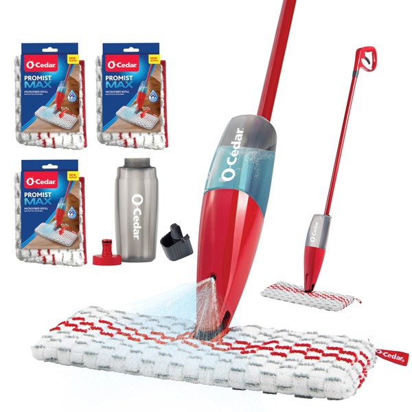 O-Cedar ProMist MAX Spray Mop, PMM with 3 Extra Refills, Red