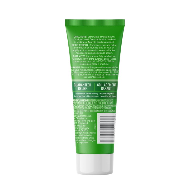 O'Keeffe's Working Hands Hand Cream is a concentrated, unscented hand cream that heals, relieves and repairs extremely dry, cracked hands. When used daily, O'Keeffe's Working Hands Hand Cream is clinically proven to instantly boost moisture levels, help prevent further moisture loss, create a protective layer on the skin's surface that locks in moisture and keeps your skin hydrated, and make a difference you will feel within days. O'Keeffe's 1 oz hand lotion tube is the ideal hand lotion travel size. Our tube formula offers the same results O'Keeffe's jar users know and expect in the convenience of a tube! Whether you prefer a tube or jar, O'Keeffe's Working Hands Hand Cream comes in both forms to provide guaranteed relief. Click on the O'Keeffe's link at the top of this page to shop the O'Keeffe's Amazon Brand Store.GUARANTEED RESULTS OR YOUR MONEY BACK.We proudly stand behind every product we make. That's why all O'Keeffe's products have a 100%, money-back guarantee. If you are not fully satisfied, we will refund 100% of the purchase price. Please retain product and call 1-800-275-2718 for replacement product or refund.