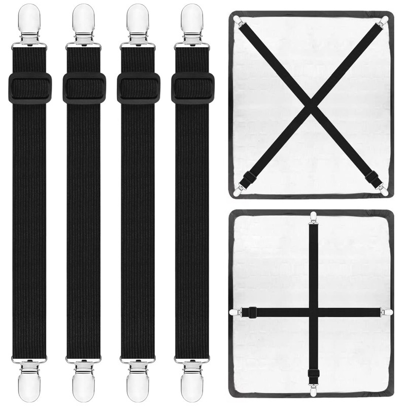 O-Kinee Pack of 4 adjustable bed sheet straps, adjustable bed sheet tensioners