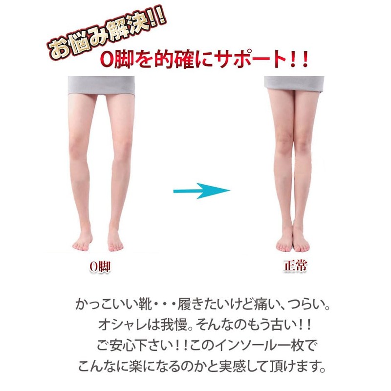 O Leg Correction Insole, Cowhide Leather, Beautiful Legs, Shock Absorption, Walking, Women's, Men's, Arch Support, 10.4 - 10.6 inches (26.5 - 27 cm), Left and Right 1 Set / 1 Pair