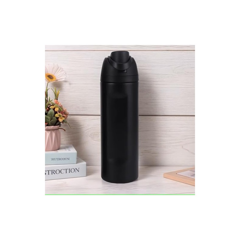 O'Mango Stainless Steel Sports Water Bottle with Straw, Double-Layer SIP-UP design and Handle to carry (Black)