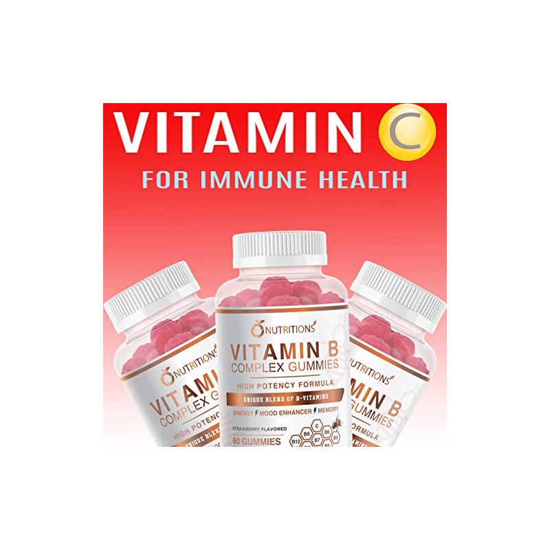 O NUTRITIONS O NUTRITIONS Vitamin B Complex Vegan Gummies with Vitamin B12, B7 as Biotin, B6, B3 as Niacin, B5, B6, B8, B9 as Folate for Stress, Energy and Healthy Immune System (2 Pack)