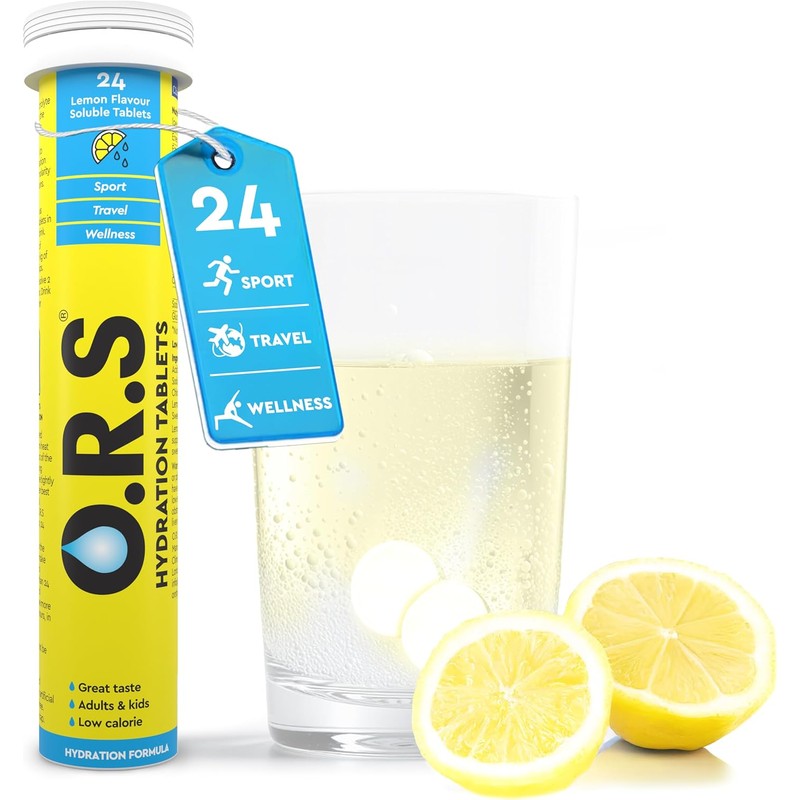 O.R.S Hydration Tablet with Electrolytes for Rehydration, Wellness, Travel, Sports & Recovery Vegan, Gluten-Free & Low-Calorie Electrolyte Tablets with Natural Lemon Flavour, 24 Tablets