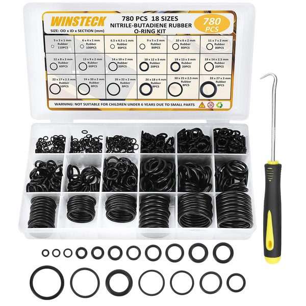 O Ring Assortment Kit, Rubber O Ring Set 780 PCS with 180°Full Pick & Hook Tool, 18 Sizes Universal Nitrile Rubber Pressure Washer for Hose, Faucet, Automotive, Air and Gas Sealing Repair