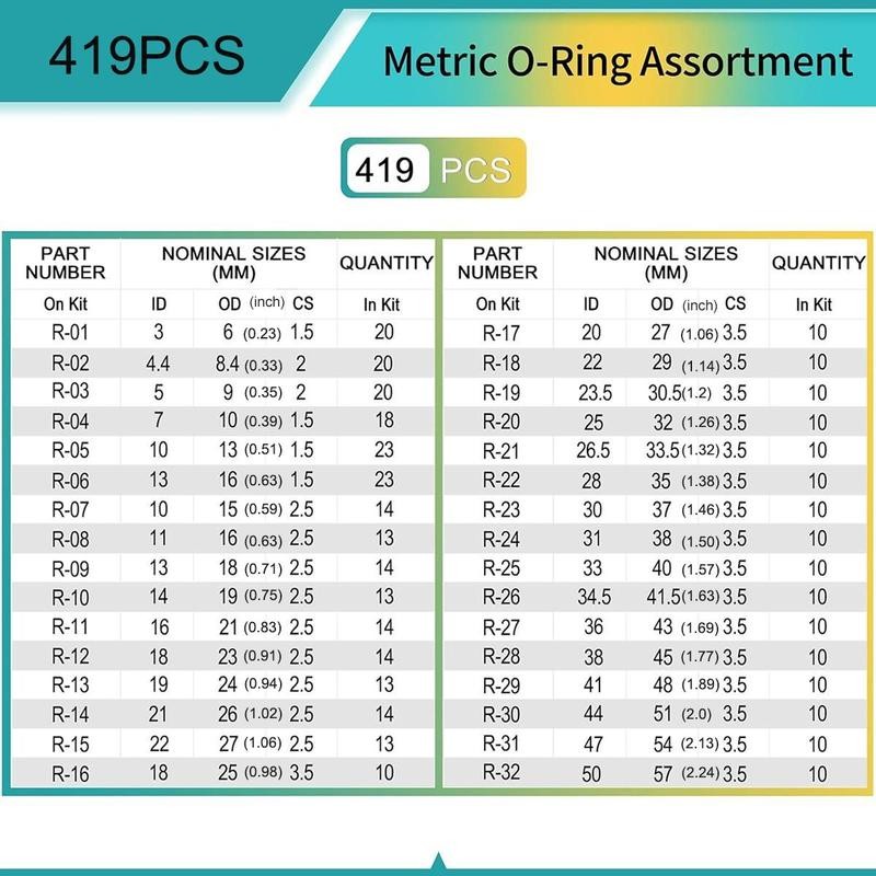 O Ring Kit, Multipurpose O-ring Assortment Kit, Metric O-ring Assortment, Washer Gasket Set for Pressure Washer, Plumbing Sealing Repair, Gas Connections