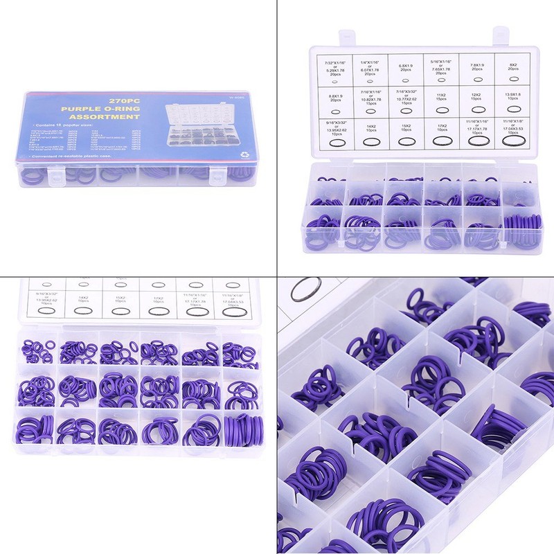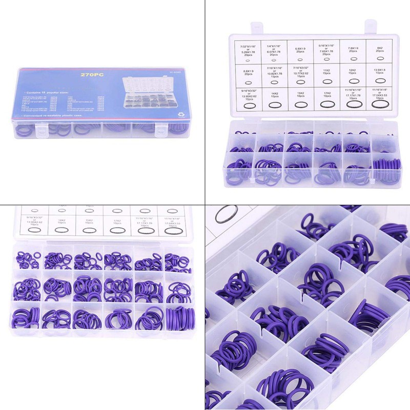 O-Ring Seal 270 Pieces Various Car Air Conditioning Compressor O-Ring Seal Set Rubber Washer (Purple)