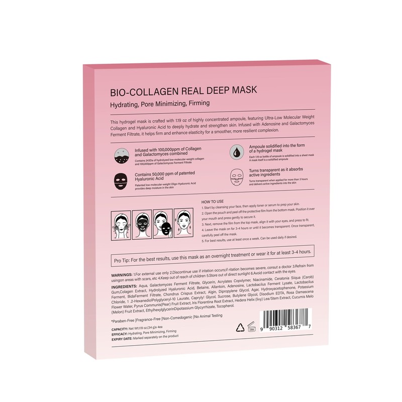 O'shin Bio-Collagen Real Deep Mask, Hydrating Face Mask, Firming and Moisturizing, 34g X 4 ea