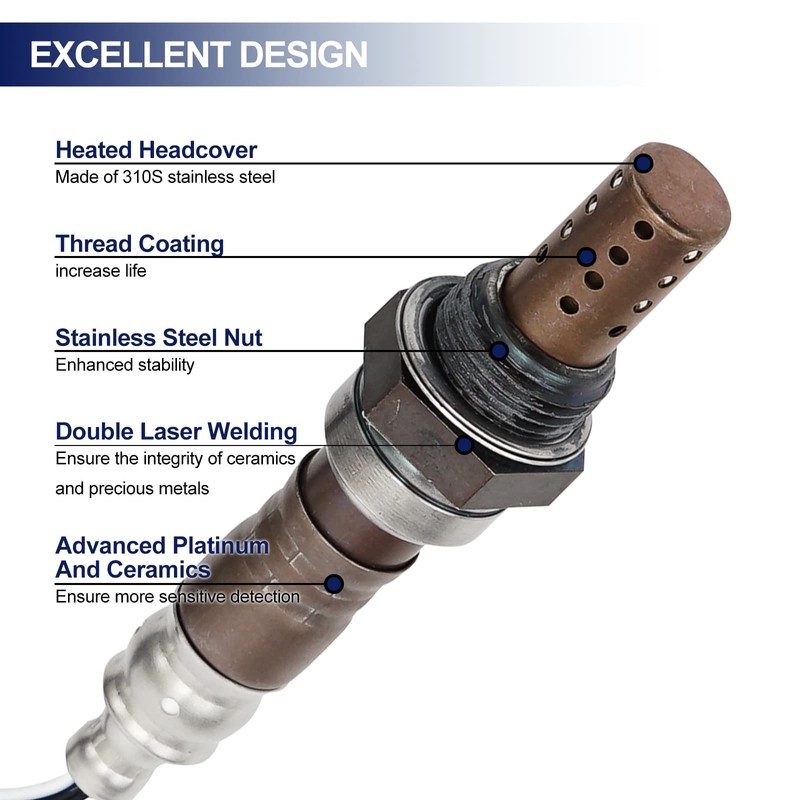 - INTERNAL AND EXTERNAL DESIGN - JOYOMSTW oxygen sensor built-in heater accelerates ignition and improves fuel efficiency; Built-in white ceramic up to 650 ℃; OEM chip improves accuracy; The breathable membrane ensures that the sensor can be insulated