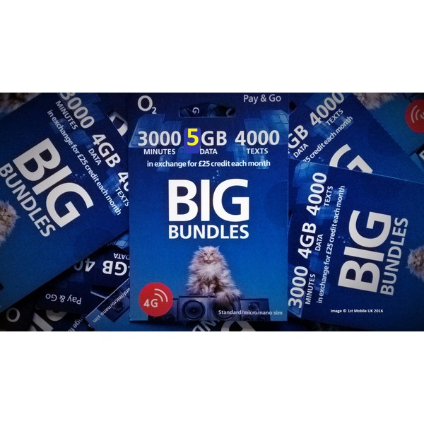 O2 Pay As You go sim card, BIG BUNDLE 25 tariff - sims can be used with any O2 tariff