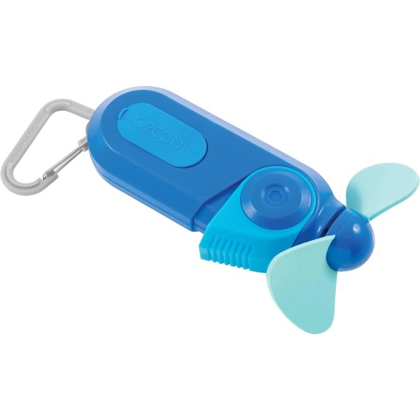 O2COOL Carabiner Portable Pocket Size Battery Powered Cooling Misting Fan - Single, Blue