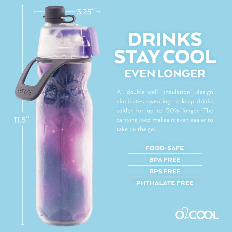 O2COOL Celestial Purple 20Oz 2 In 1 Misting And Sipping Water Bottle For Travel