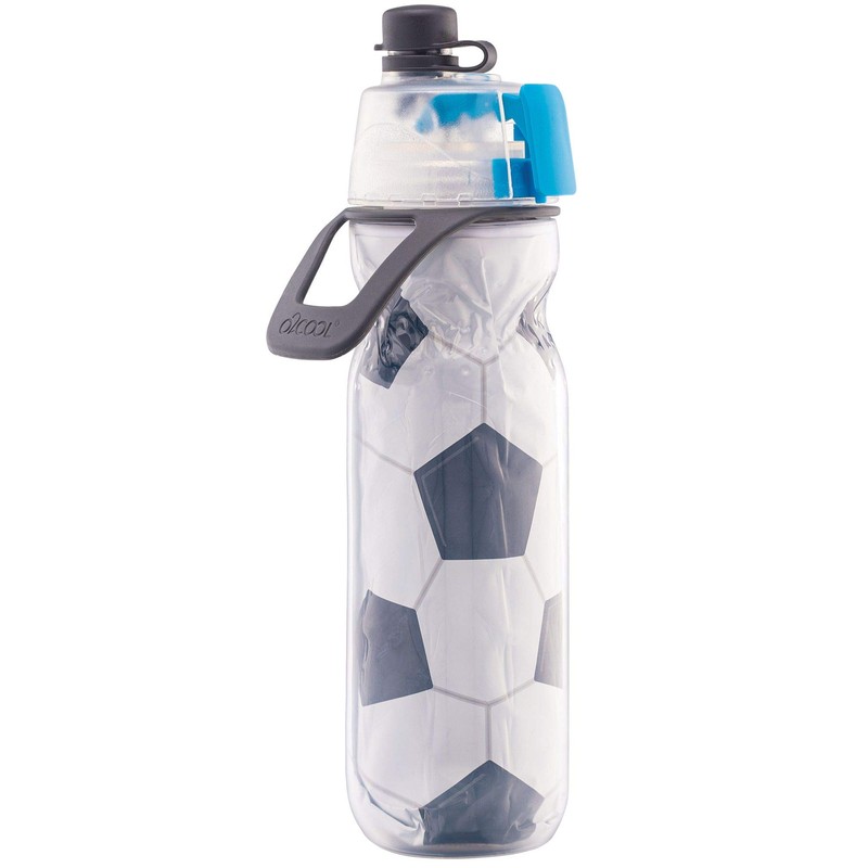 O2COOL Mist 'N Sip Misting Water Bottle 2-in-1 Mist And Sip Function With No Leak Pull Top Spout Reusable Sports Water Bottle - 20 oz (Soccer)