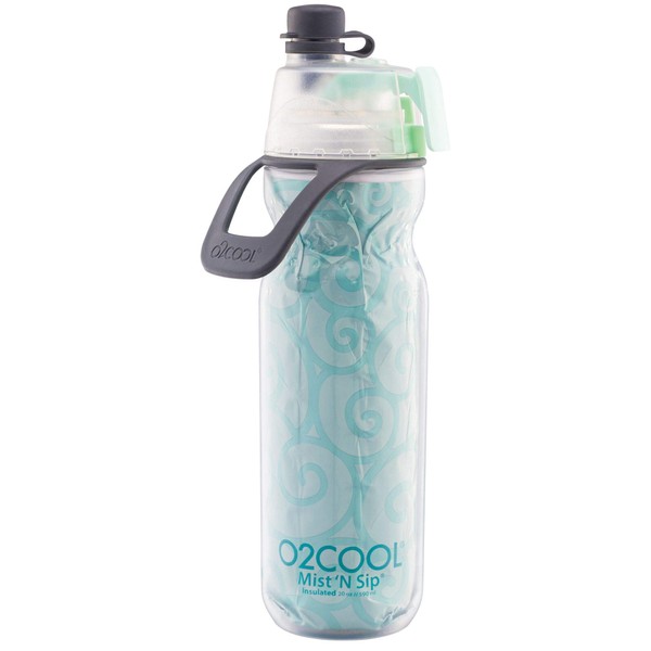 O2COOL Mist 'N Sip Misting Water Bottle 2-in-1 Mist And Sip Function With No Leak Pull Top Spout Reusable Sports Water Bottle - 20 oz (Yoga Mint)