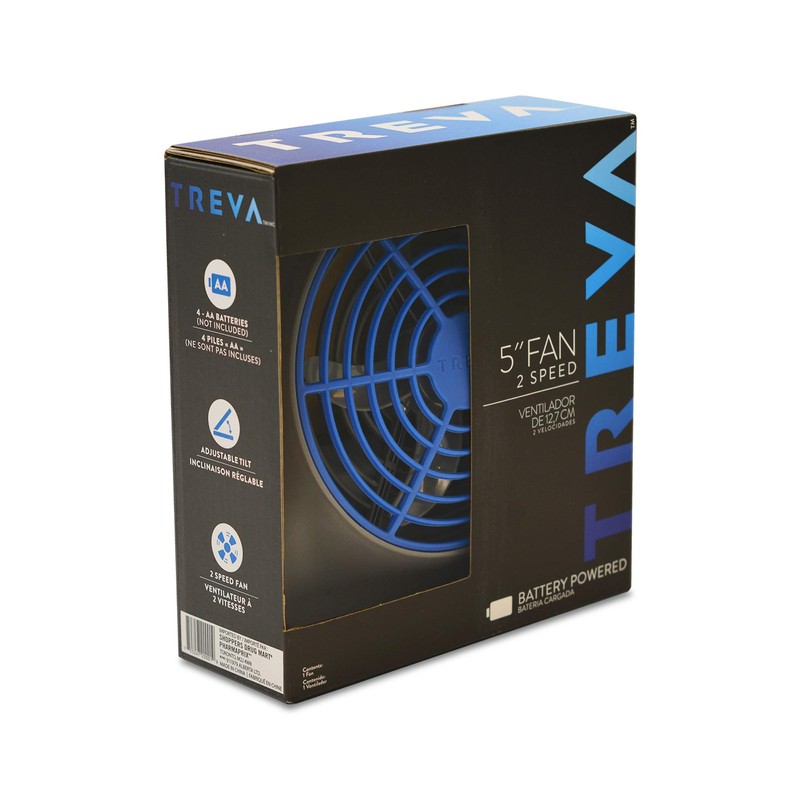 - BATTERY POWER FAN - This 5-Inch portable fan from Treva runs on 2 D batteries (not included), cool gadgets for an awesome office desk accessories or floor fan for your summer cooling