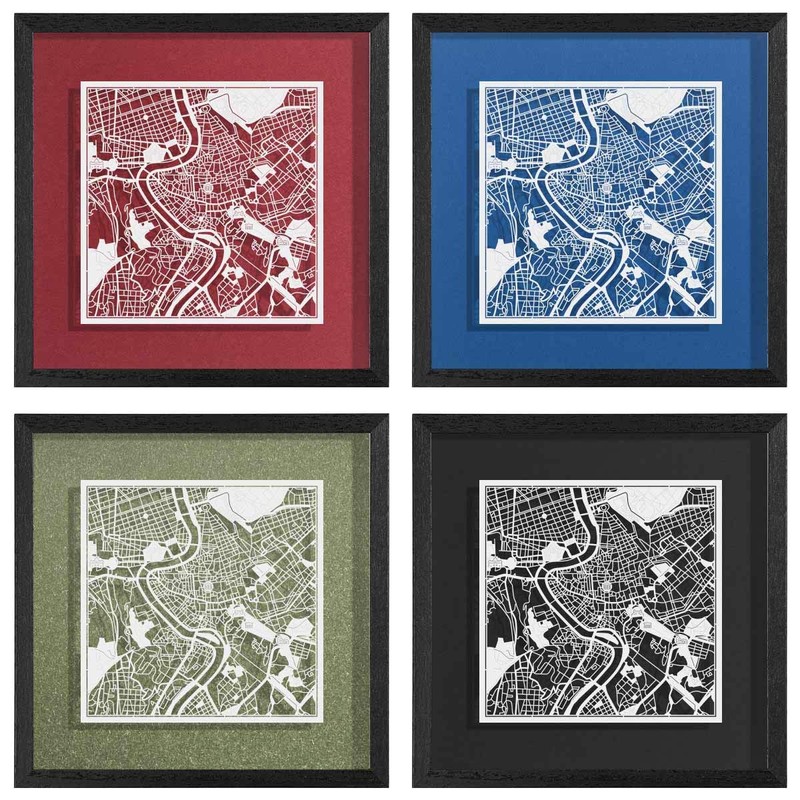 O3 DESIGN STUDIO Rome Paper Cut Map framed, White map, Black frame, 9x9 inches, Gift Boxed, 4 background color, self-changing, Paper Art