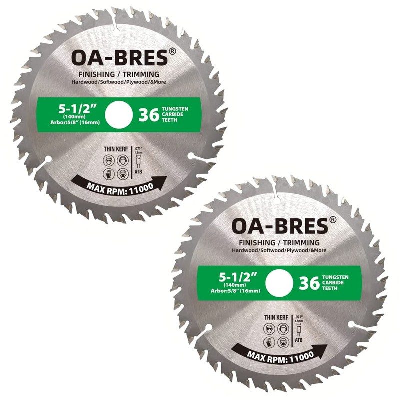 OA-BRES 5-1/2 Inch 36 Tooth ATB Finishing Trimming Saw Blade, Cordless Trim Saw Blade with 5/8-Inch Arbor (1/2-Inch and 10-mm Reducer Bushings Include) - 2 Pack