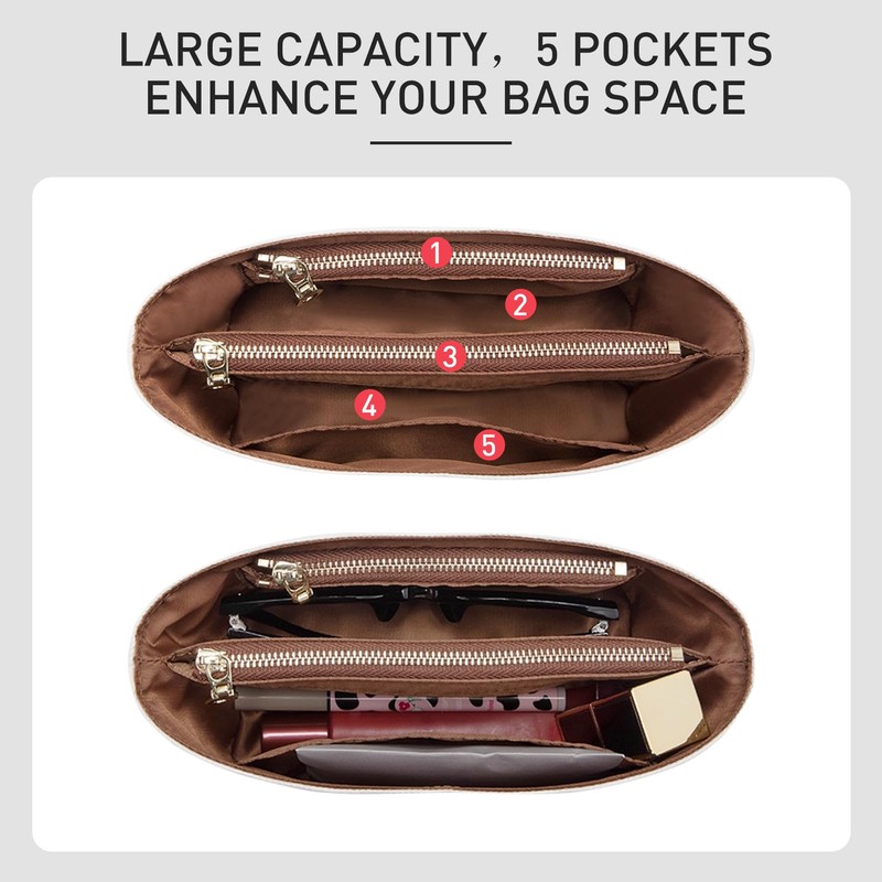 - KEEP BAG ORGANIZED & TIDY: 5 Pockets purse organizers for inside purse including One YKK Zipper Pouch. Keep essentials secure and accessible—no more digging through clutter,everything is neat and tidy,It is perfect for everyday use and is great for organizing your office supplies, school supplies, and travel essentials