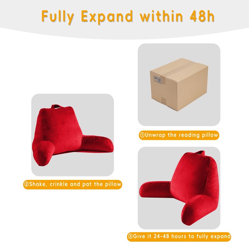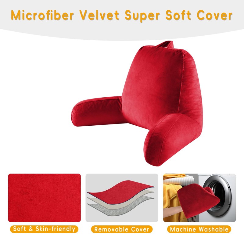 OAISZ Reading Pillow for Sitting in Bed Adult, Reading Pillow with Shredded Memory Foam, Bed Pillow with Washable Cover, Back Pillow Sitting Up with Extend Arms, Red, X-Large