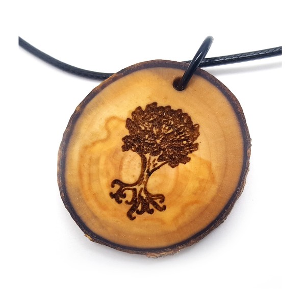 Oak Tree Wooden Pendant Necklace, Celtic Symbol Tree Slice Jewelry