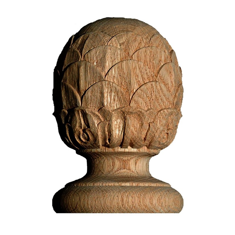 OAK4239A Hand Carved Pineapple Finial in Red Oak
