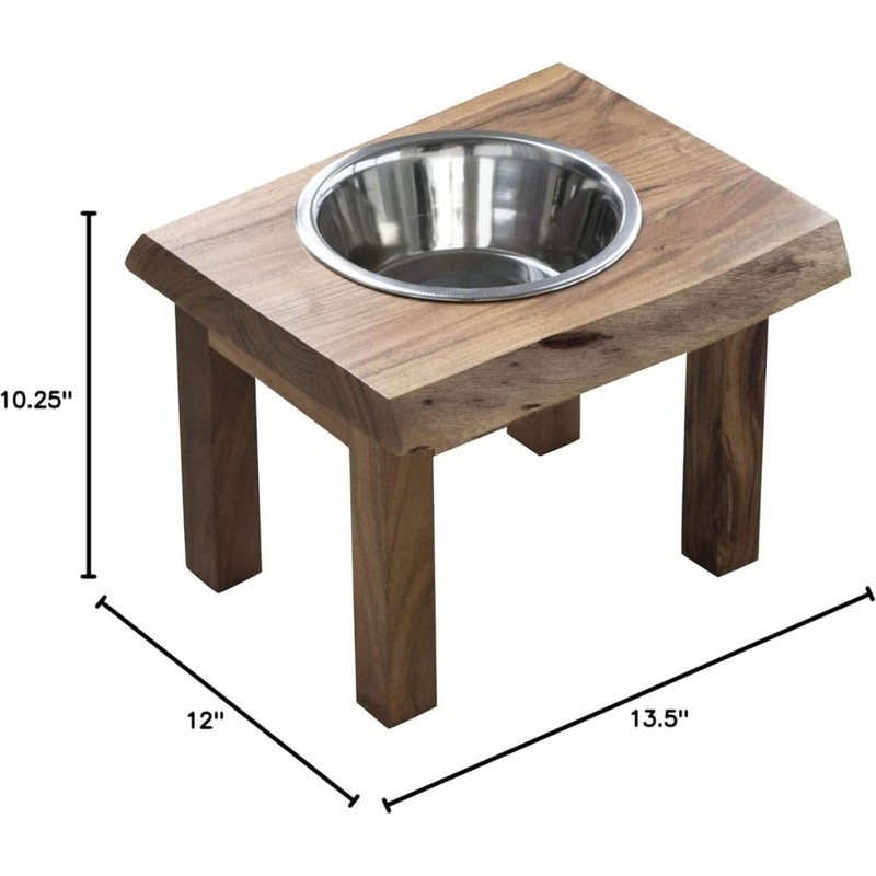 Oakestry Acacia Wood Live Edge Single Bowl Pet Feeder Stand Multi-Functional Rustic Feeding Station with Handcrafted Acacia Natural Finish and Easy-Clean Design