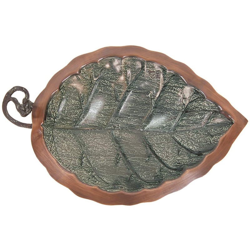 Oakestry BB-04-WM Aspen Leaf Wall Mount Bracket Birdbath with Embossed Leaf Design and Curled stem Detail, Plated with Antique Brass in Black