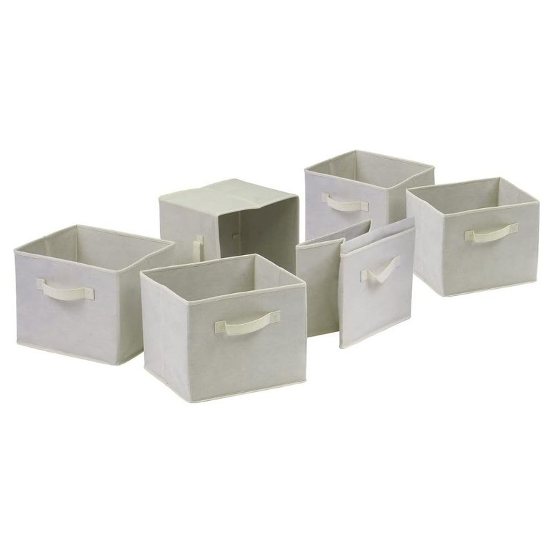 Oakestry Capri 6-piece Foldable Basket Set Beige Stylish Storage Solution for Home or Office Organize Household Items Soft and Durable Fabric Construction Collapsible for Easy Storage