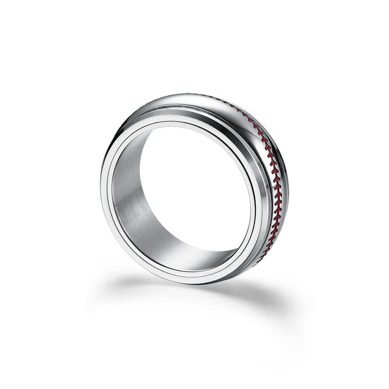 OAKKY Unisex Stainless Steel 8mm Simple Personality Baseball Pattern Rotatable Fidget Ring Domed Style Cool Wedding Band Sports Jewelry Silver Size 12