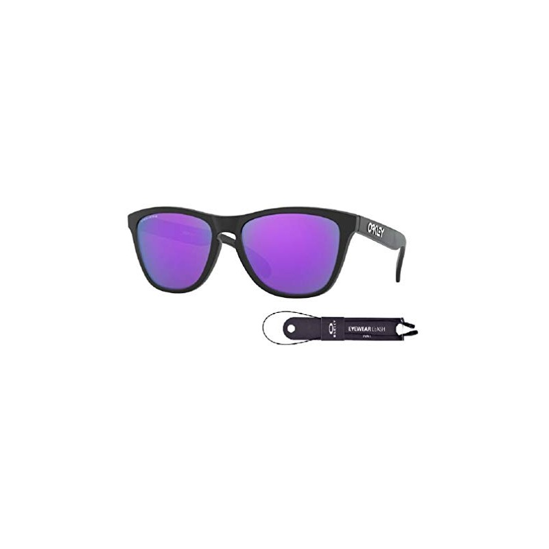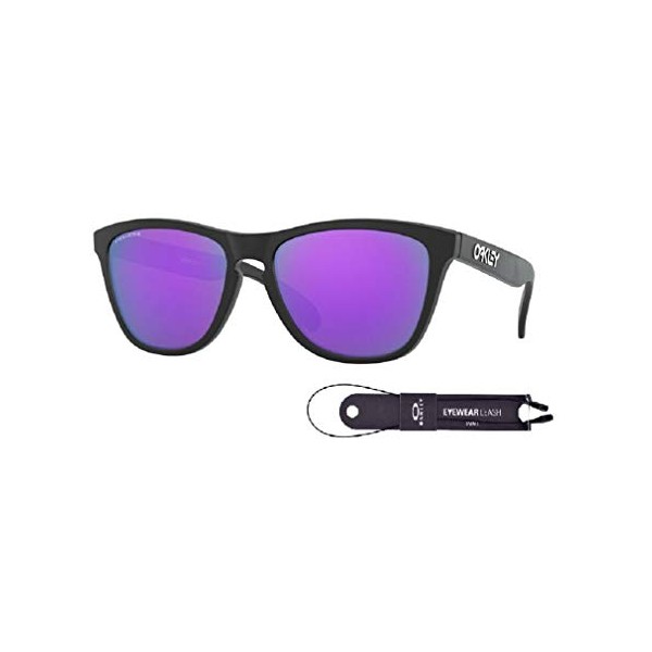 Oakley Frogskins OO9013H6 55M Matte Black/Prizm Violet Sunglasses For Men+BUNDLE with Oakley Accessory Leash Kit