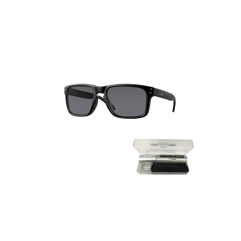 Oakley OO9102 Sunglasses Bundle: OO 9102 9102E5 Holbrook Matte Black Grey and Eyewear Cleaning Kit