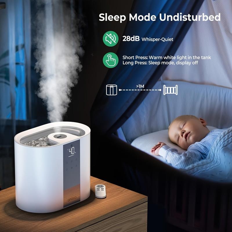 OakVault Humidifiers for Bedroom with Remote Control—a smart and convenient solution for creating the perfect atmosphere in your home. Equipped with a user-friendly remote control, you can effortlessly adjust the mist output, set timers, and switch between modes without leaving the comfort of your bed. This humidifier uses advanced ultrasonic technology to produce a cool mist that helps maintain ideal humidity levels, providing relief from dry skin, sinus issues, and seasonal allergies. The ultra-quiet design ensures a restful night's sleep, and its sleek, modern look blends seamlessly with any bedroom décor. Experience a new level of comfort and convenience with OakVault.