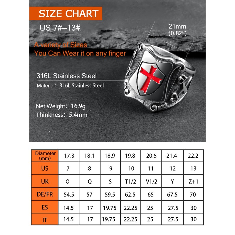 Oaldilee Mens Crusader Jerusalem Cross Ring Biker Cross Shield Ring for Men Viking Jewelry Gifts,Size 13
