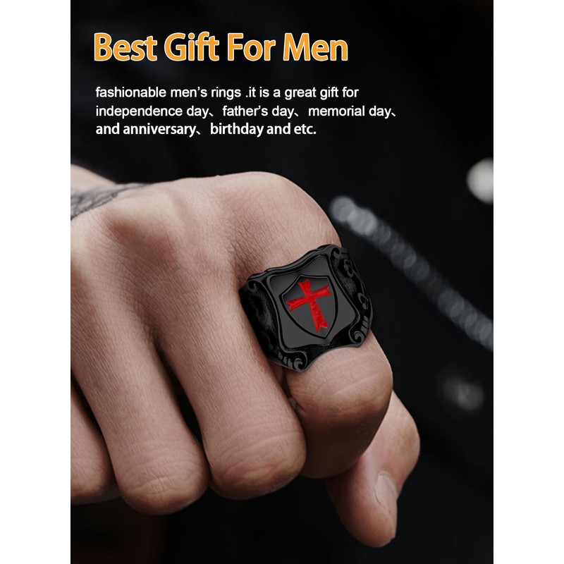 Oaldilee Templar Legion Protective Shield crucifix men Ring Ephesians 6:13-17 Red Cross Design Men's Religious Chrisitian knights templar rings Stainless Steel Retro Punk Black Ring,Size9