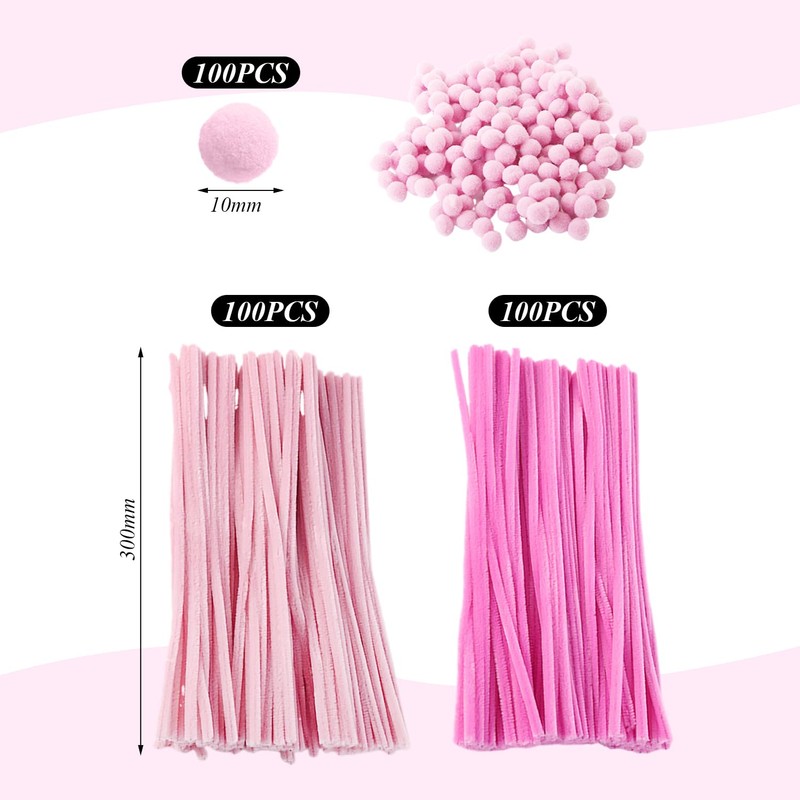 1. This product contains 200 pink twist sticks and 100 pink pom poms, which are suitable for various creative crafts.