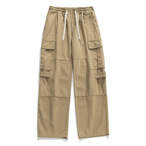 Oaovo Men's Cotton Cargo Pants Mulit Pockets Drawstring Waisted Loose Straight Trousers Khaki 31